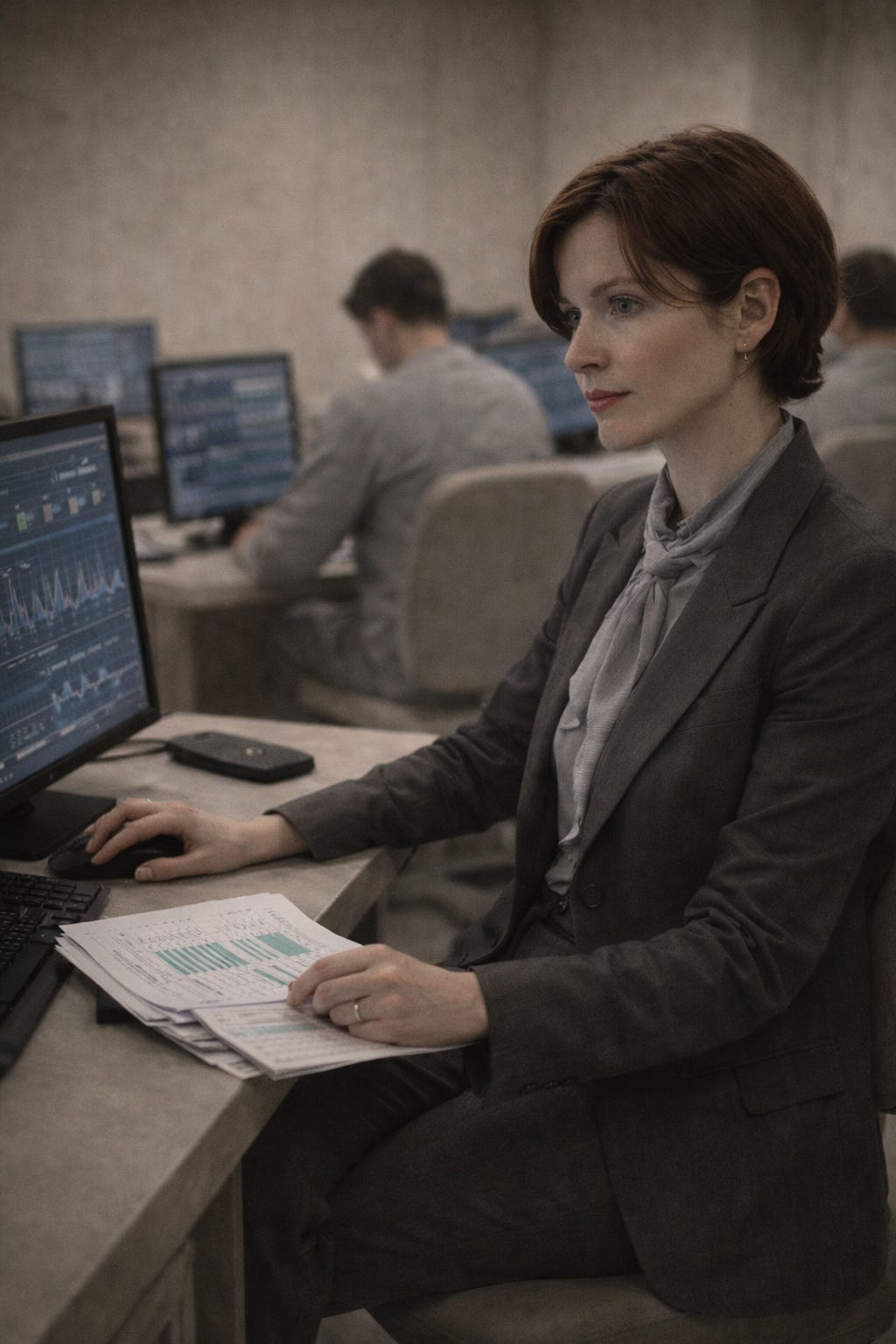 No residents. No voices. Just terminals arranged in neat rows, each assigned a narrow scope of access. The air feels different here—cooler, steadier. Like a place designed to slow the heart.